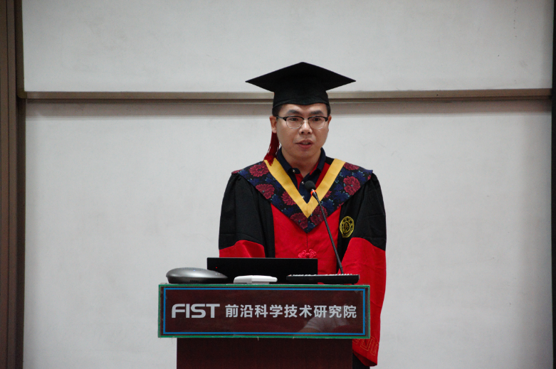 毕业生代表梁永平回忆了在前沿院拼搏奋斗的美好时光,感谢学院为自己今后的道路提供了充足的信心、勇气、毅力与平和的心态,作为新时代的年轻人,未来拥有无限可能,要在最美丽的年纪,敢于追逐最美好的梦想。