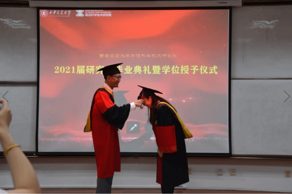 近日,前沿院举办了2021届研究生毕业典礼暨学位授予仪式。学院党政领导班子、教师代表、家长代表、应届毕业生、研究生导师等出席了此次典礼,本次活动由李妙辉老师主持。典礼现场师生们欢聚一堂,气氛热烈,为本次活动专门拍摄的毕业主题视频,表达了师生们对未来工作生活的祝福与期望。